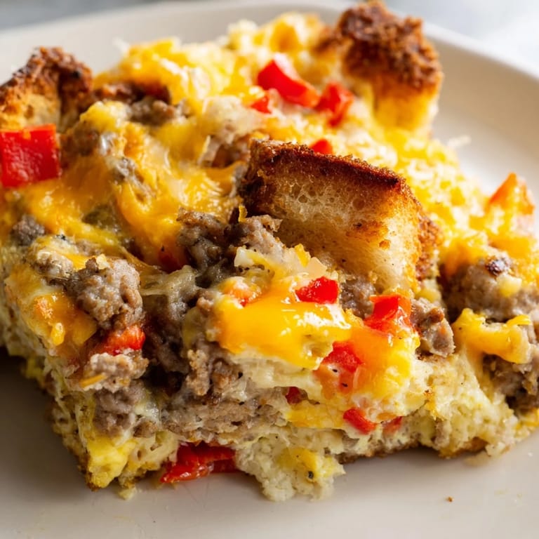 Save to Pinterest There's something about a breakfast casserole that transforms a sleepy morning into something worth waking up for. I stumbled onto this particular version years ago when I was hosting friends for a lazy Sunday brunch and realized I had about twenty minutes to pull together something that wouldn't disappoint. The magic was in discovering that day-old bread, sausage, and eggs could become something so much greater than the sum of their parts—golden, savory, and impossibly easy to pull together the night before.