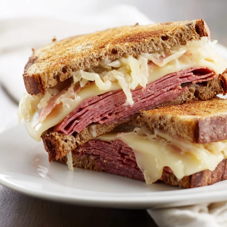 Save to Pinterest There's something about the sizzle of a Reuben hitting a hot skillet that just feels right, especially on a crisp afternoon when you need something warm and satisfying. I stumbled into my love for this sandwich not through some fancy restaurant, but standing in my kitchen on a ordinary Tuesday, watching the cheese melt into rivers between layers of corned beef and sauerkraut. The combination seemed so simple—bread, meat, cheese, that distinctive tangy-creamy balance—yet it somehow became the sandwich I crave without warning. My friend Marcus swears it's the Russian dressing that makes it, but I think it's the way everything gets pressed together on the griddle, creating this perfect contrast of crispy exteriors and melting centers. Now it's my go-to when I want to feel like I'm sitting at an old deli counter, even if I'm just cooking in my apartment.