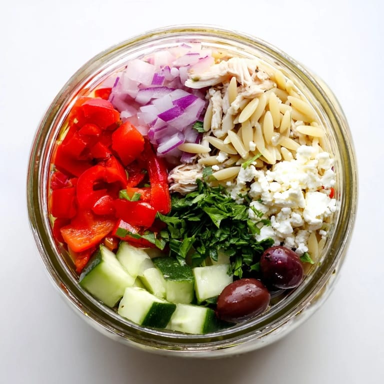 Save to Pinterest The first time I made these salad jars, I was skeptical about the whole layering concept. But after shaking that first jar at my desk and watching everything come together perfectly, I was converted. The orzo stays separate from the dressing until the very last moment, and somehow each bite tastes even better than the day I made it.
