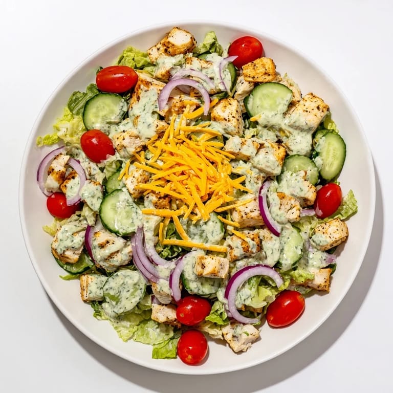 - Toss the crisp lettuce with vegetables and cheese, pile on warm chicken, and drizzle that beautiful dressing until everything glistens