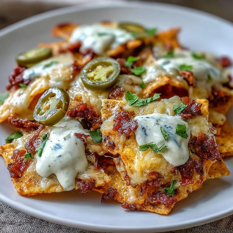 Save to Pinterest My buddy texted me at halftime asking if I could throw together something for the second half, and I remembered these loaded nachos I'd perfected after too many trial runs in my kitchen. The secret was figuring out that you need sturdy chips that won't collapse under the weight of cheese sauce and seasoned beef, and that a quick oven finish brings everything together without turning the whole thing into a soggy mess. Twenty minutes later, I had a platter that disappeared faster than the game's final touchdown. Now whenever there's a gathering at my place, someone inevitably asks for the nacho recipe, and I love watching people pile their plates high without worrying about everything sliding off.